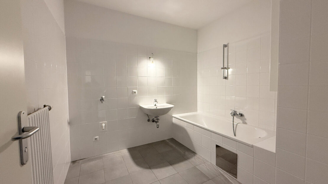 Vorzimmer, Küche mit Essbereich, 3 Zimmer, Bad mit Badewanne, WC.
