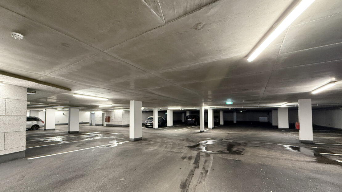 Das Projekt umfasst eine Tiefgarage mit umliegenden Kellerräumen. Für Haus 1 sind 32 Stellplätze vorgesehen, von denen 1 als behindertengerecht ausgewiesen ist. Für Haus 2 und 3 sind in der Tiefgarage sind 31 Stellplätze vorgesehen, von denen 2 als behindertengerecht ausgewiesen sind. Zudem werden Besucherparkplätze im Freien errichtet.